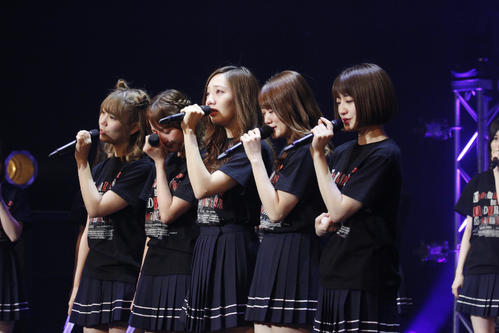卒業を発表し、「きっかけ」を歌う能條愛未(手前)