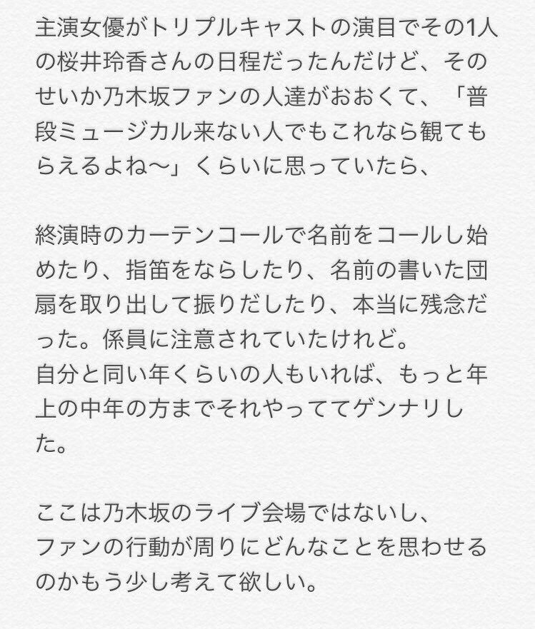初めてのミュージカルで懸命に頑張ってる玲香ちゃんの気持ちを台無しにしてるわからないのかな?