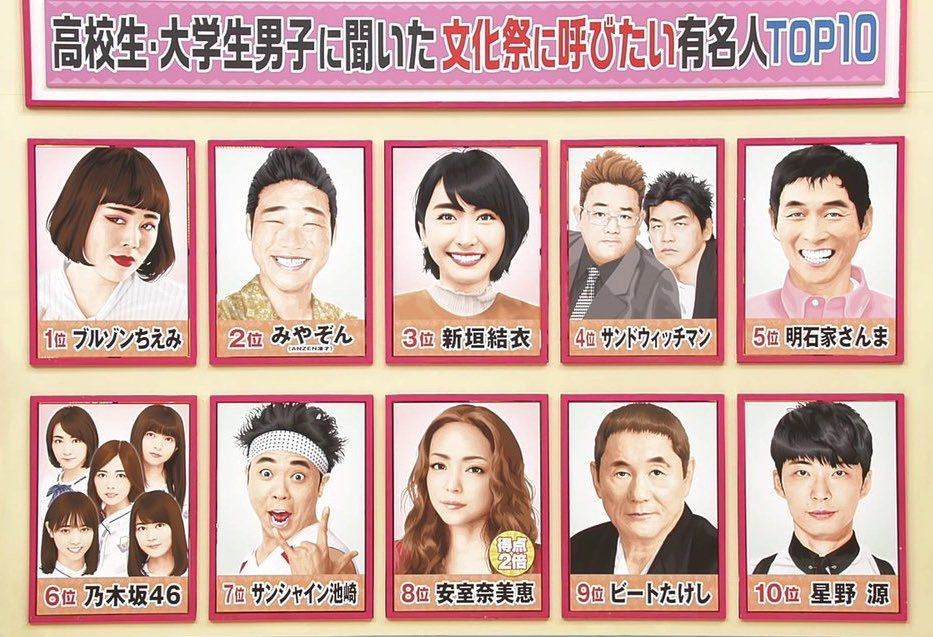 大学生が学園祭に来てほしい有名人Top5