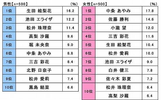 男子に平沢大河人気ワロタ。成田きゅんもよろしくw