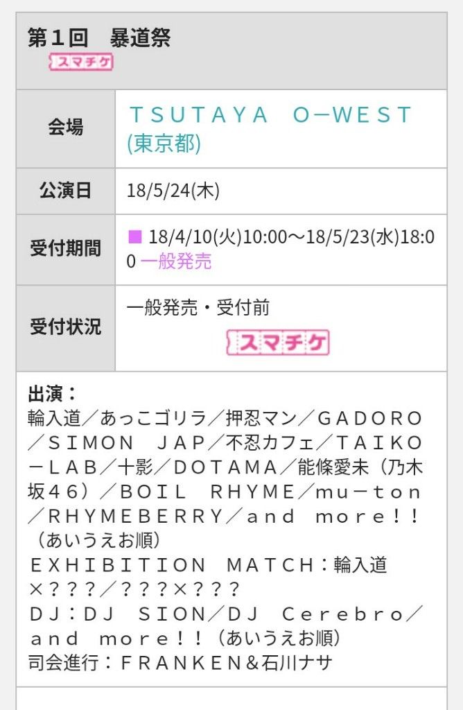 ググったら、ライブ(ラップ)とMCバトルやるみたいだけど大丈夫かね