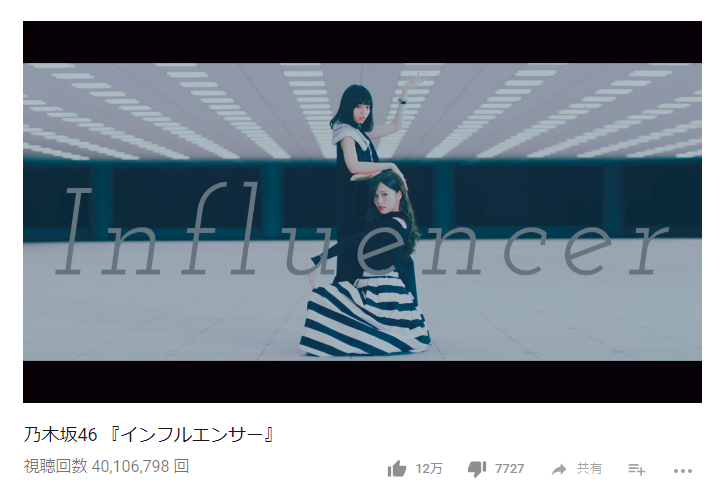 祝!『インフルエンサー』が4000万回再生突破!これはもう乃木坂の代表曲ってことか・・・!?【乃木坂46】 2018年08月11日 カテゴリ:MV 1: 君の名は@まとめたいよ 良いよね? 祝!『インフルエンサー』が4000万回再生突破!これはもう乃木坂の代表曲ってことか・・・!?【乃木坂46】の続きを読む タグ :#インフルエンサー#MV#再生回数