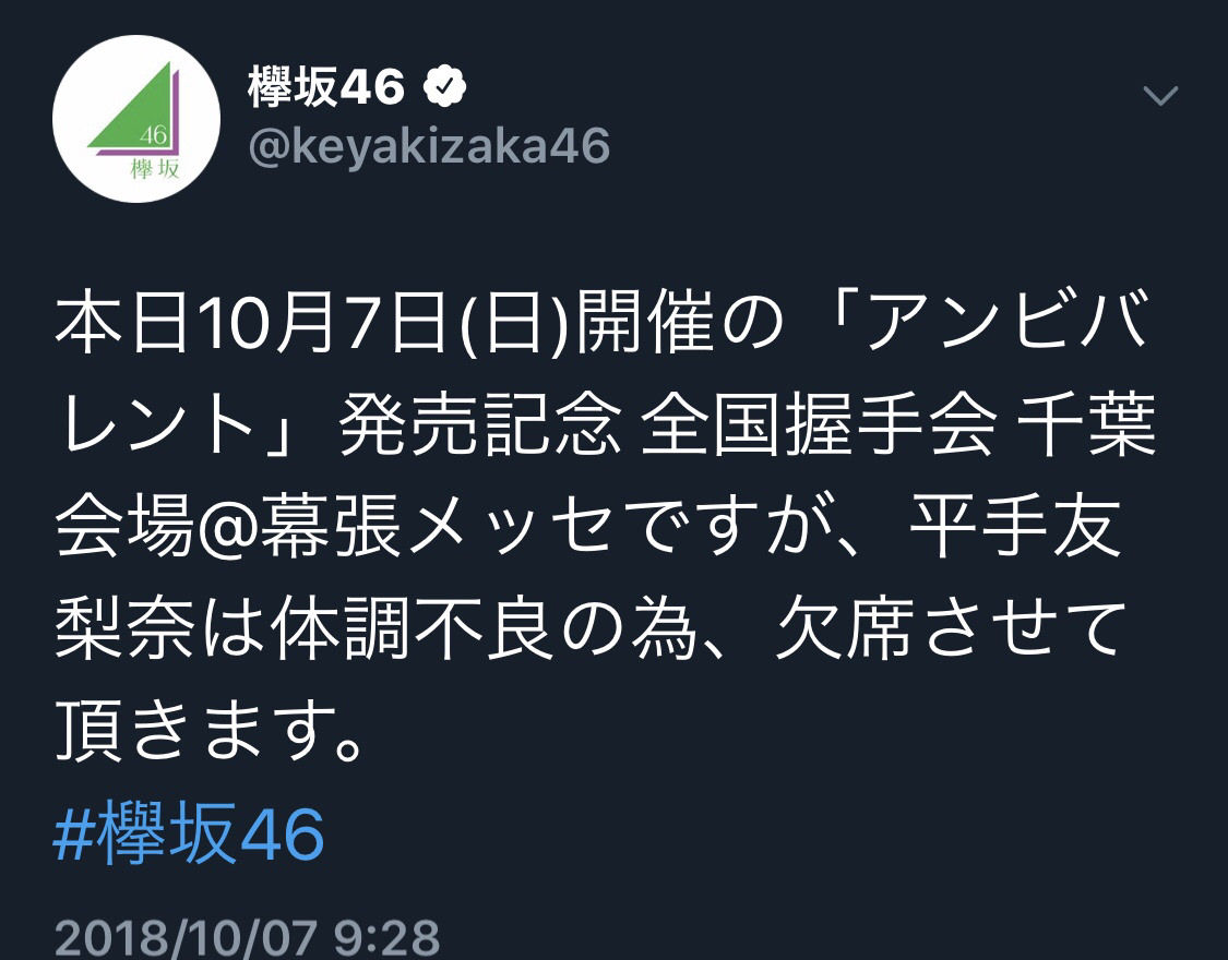 平手友梨奈が体調不良に・・・【欅坂46】 2018年10月07日 カテゴリ:欅坂46 1: 君の名は@まとめたいよ そもそも、握手まだやってたんだ? 平手友梨奈が体調不良に・・・【欅坂46】の続きを読む タグ :#平手友梨奈