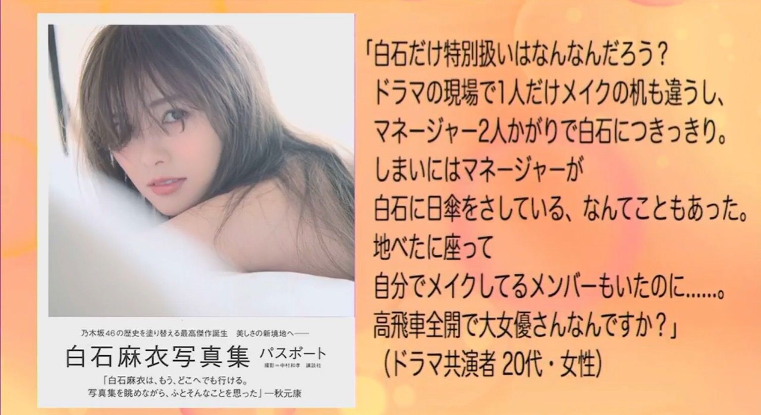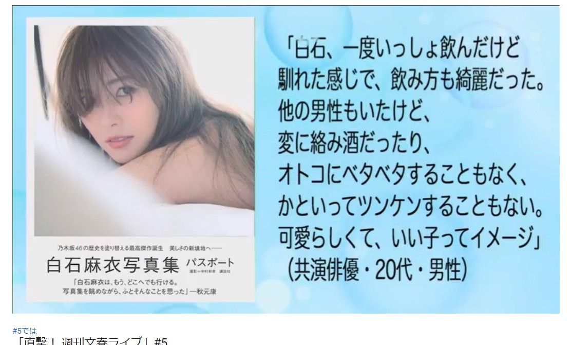 文春ライブ『白石麻衣 20代の共演俳優と一緒に飲んでた』インタビューがこちら・・・【乃木坂46】 2018年08月25日 カテゴリ:白石 麻衣 1: 君の名は@まとめたいよ 文春ライブにて 文春ライブ『白石麻衣 20代の共演俳優と一緒に飲んでた』インタビューがこちら・・・【乃木坂46】の続きを読む タグ :#白石麻衣#文春